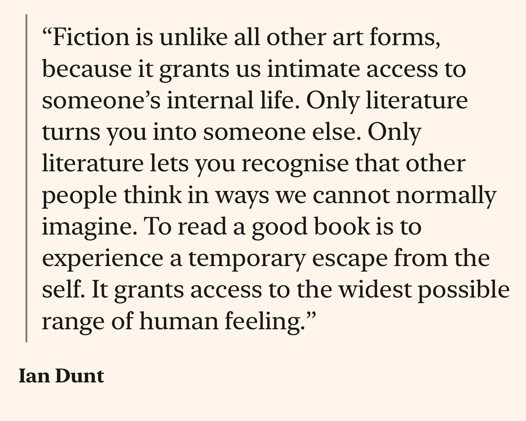 I really enjoyed reading Ian Dunt’s 2026 resolutions especially on fiction and the horror of ‘small plates’ dining. Although I read a lot of non-fiction, I’ve learned more from fiction and it has changed me more.